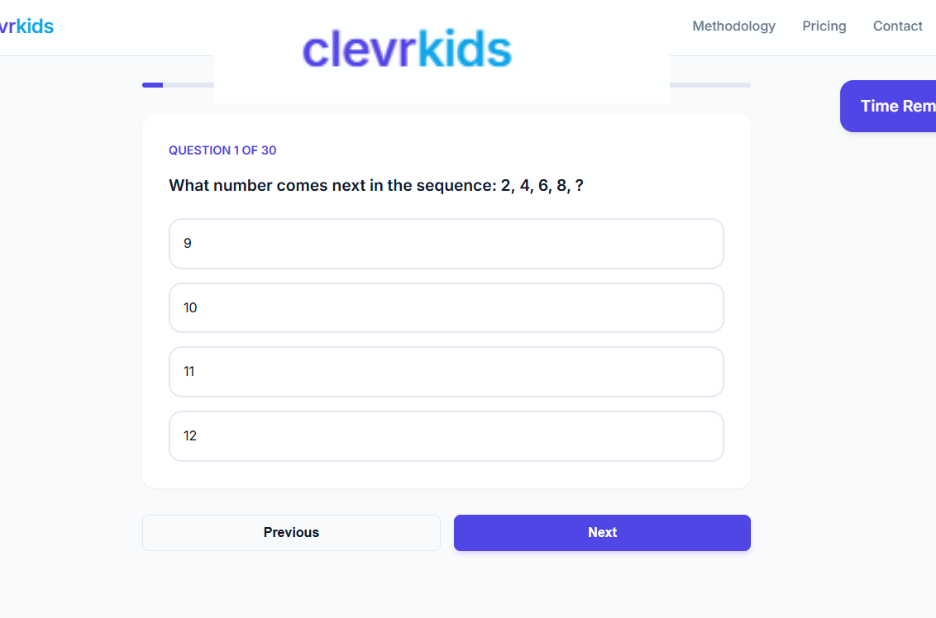 Enhance young minds at clevrkids.com with interactive quizzes, colorful visuals, and easy reports tailored for Kindergarten IQ Test to support early learning and growth.