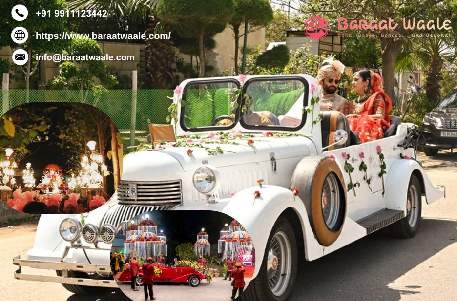 Make a stylish entrance with vintage car for wedding entry Delhi, adding charm and elegance to your wedding at baraatwaale.com, ensuring an unforgettable Baraat experience.
